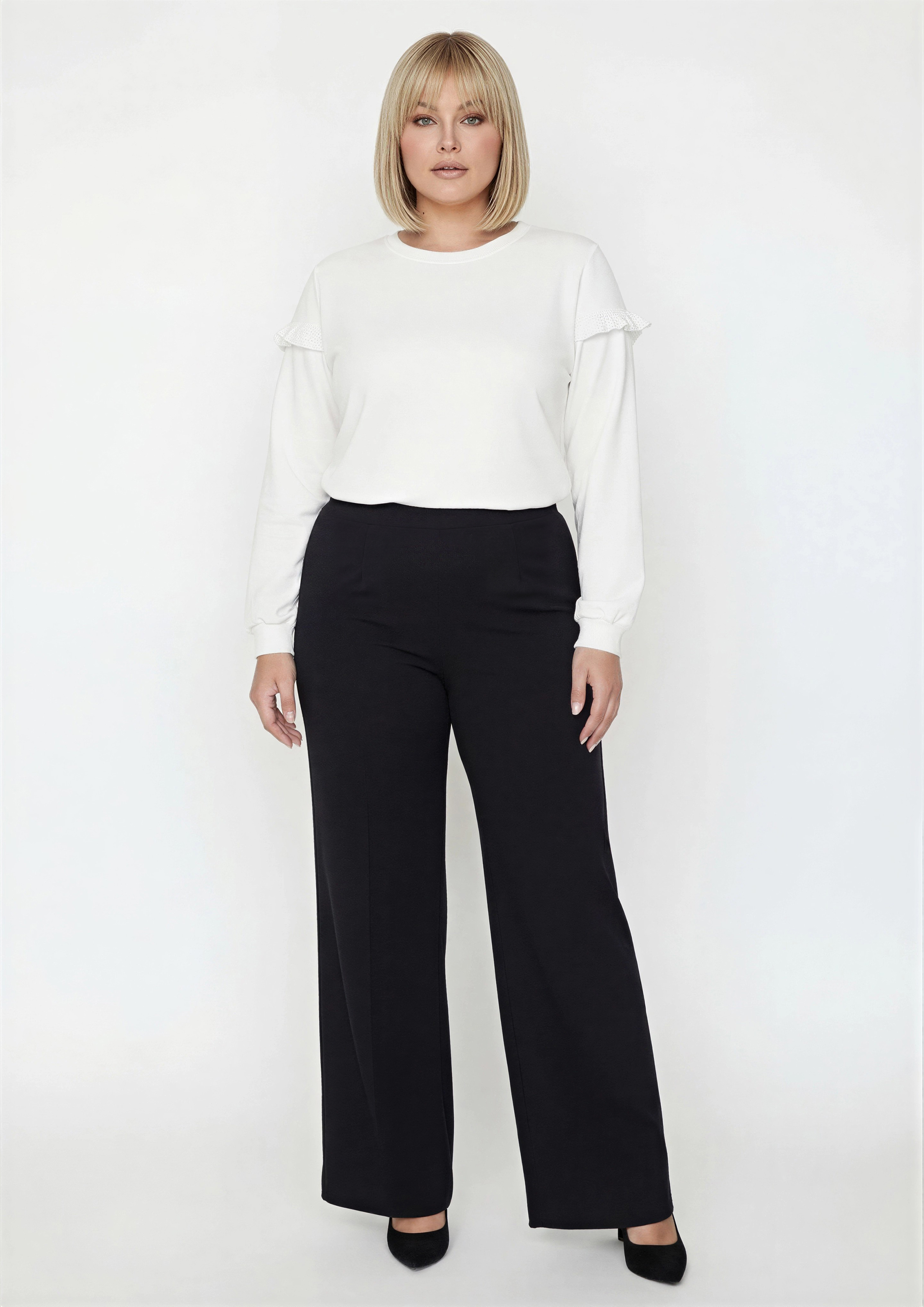 Брюки-палаццо женские из эластичного трикотажного джерси. У брюк удобная, высокая посадка с широким кроем от пояса до низа. Пояс на эластичной резинке, это создает удобство и комфорт в носке.