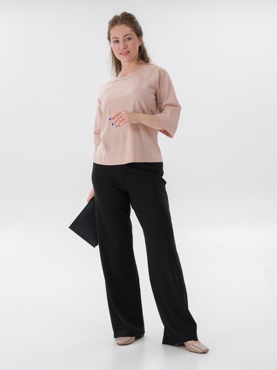 Брюки-палаццо женские из эластичного трикотажного джерси. У брюк удобная, высокая посадка с широким кроем от пояса до низа. Пояс на эластичной резинке, это создает удобство и комфорт в носке.